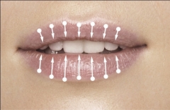 Przy wykonywaniu zabiegu podkreślania kontur ust można wykorzystać zarówno produkt Restylane Lip Volume jak i Restylane Lip Refresh. W pierwszej kolejności wykonujemy zabieg techniką prostopadła, a następnie liniową.